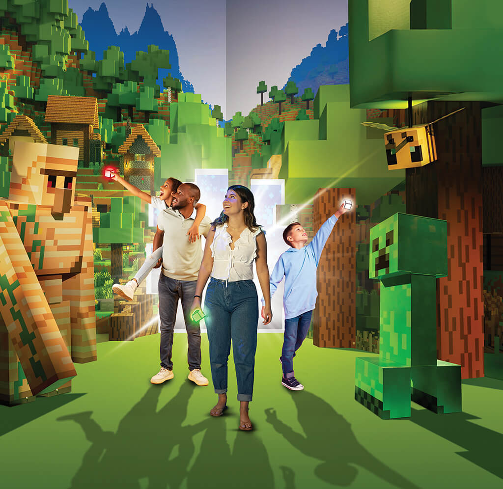 Schau auf dem Handelsplatz vorbei und entdecke das offizielle Merchandise zur Minecraft Experience!